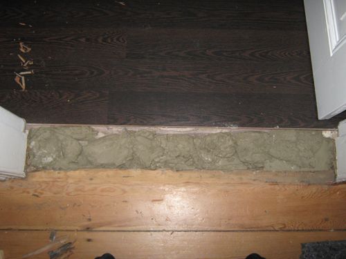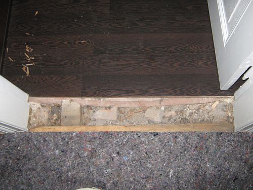 Eine neue Türschwelle einzubauen, kann eine echte Herausforderung sein. Wir haben von Flur zu Küche eine neue Türschwelle einbauen müssen, da der Fußboden in der Küche nach Installation der Fußbodenheizung um 4 Zentimeter erhöht wurde. Die neue Schwelle wurde mit einem speziellen Kleber befestigt.